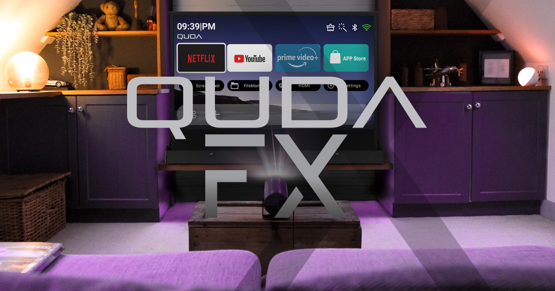 The Veho Quda FX smart projector is a home cinema in a pocket. The Quda FX uses Android 11.0 operating system for a smoother, faster experience with built-in streaming apps such as Netflix, YouTube & AirPin/Miracast (Android) casting apps to cast from a smartphone or tablet. Watch movies in Full HD 1080p and 4K supported playback, Wi-Fi 6 ensures an easy, fast connection. It also features a built-in HDMI input port which is suitable for TV Stick, game consoles, PCs, smartphones, laptops, DVD players, and USB sticks etc (check for compatibility with your HDMI device). Includes carry bag and multi-regional mains plugs for international travel.